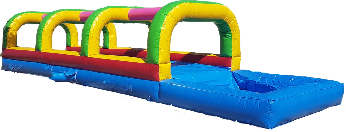 Este tipo de hinchables acuáticos con piscina es ideal para celebraciones en jardines, urbanizaciones, colegios o eventos privados donde se busca una actividad dinámica que mantenga a los participantes entretenidos durante horas. Gracias a su diseño largo y resbaladizo, varios niños pueden participar por turnos generando un ambiente de juego continuo.